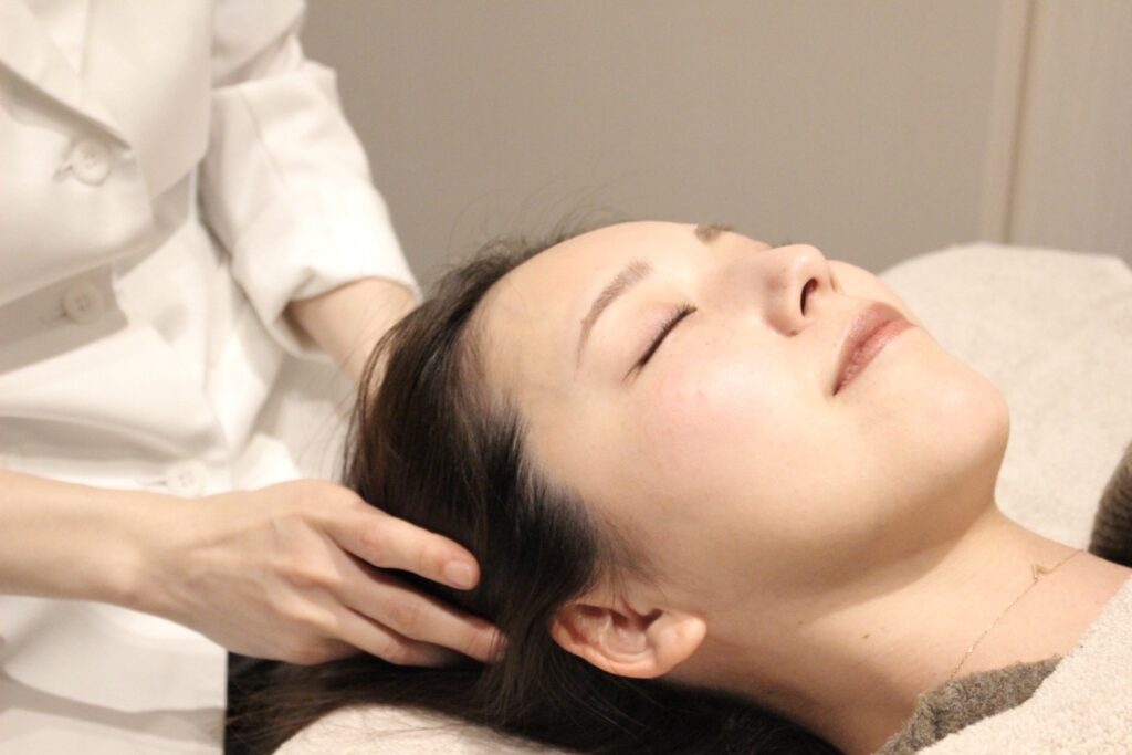 頭皮への鍼施術とヘッドスパで、お顔全体のリフトアップに加え、ストレスや自律神経の乱れによるトラブルにもアプローチします。睡眠の質の向上、頭痛予防や首肩こりのケアとしてもおすすめです。